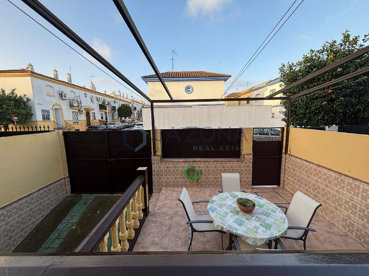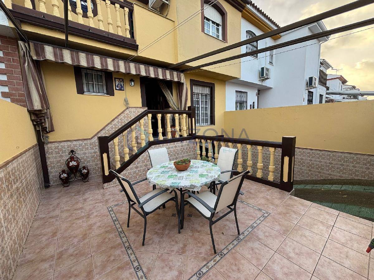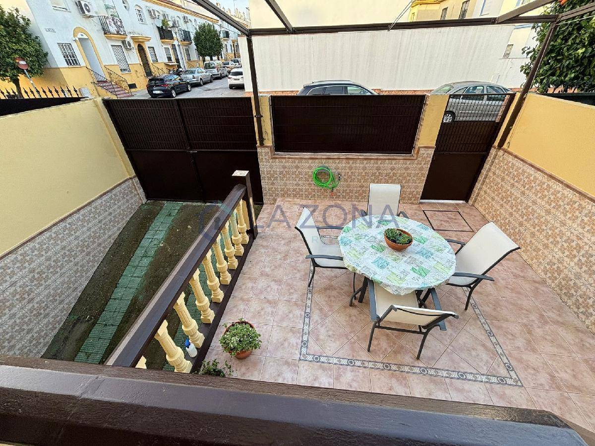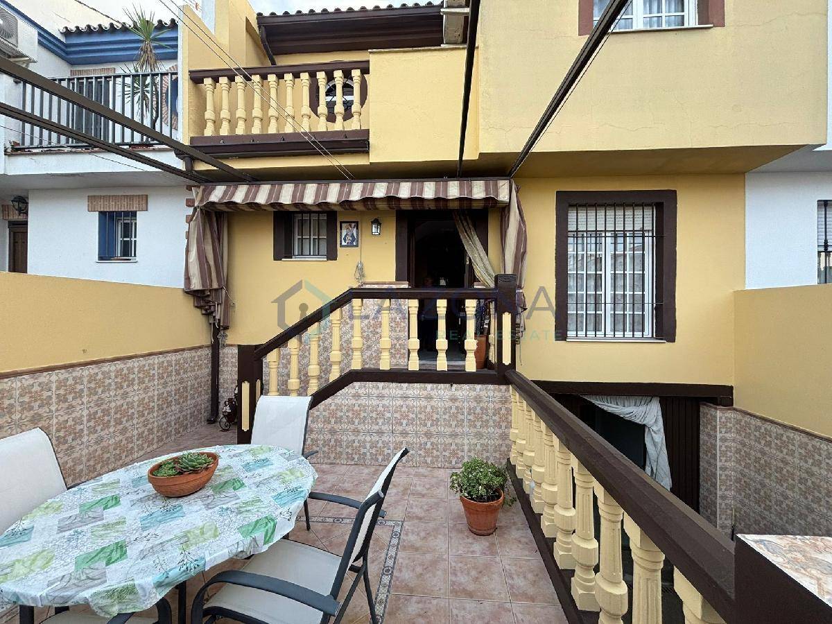 Ref: 0109. Vivienda en muy buen estado de 108 m2 con dos plantas y dos patios, patio delantero y patio trasero, se compone de salón comedor, cocina con lavadero desde donde se sale al patio trasero, tres dormitorios en la planta superior y tres baños, uno en cada planta. En el salón se podría obrar una habitación ya que tiene doble puerta de entrada y es bastante amplio.