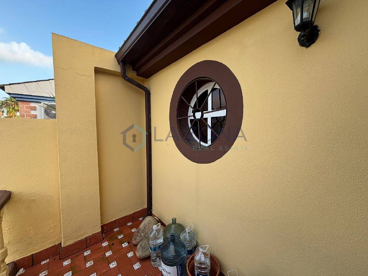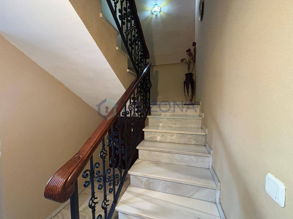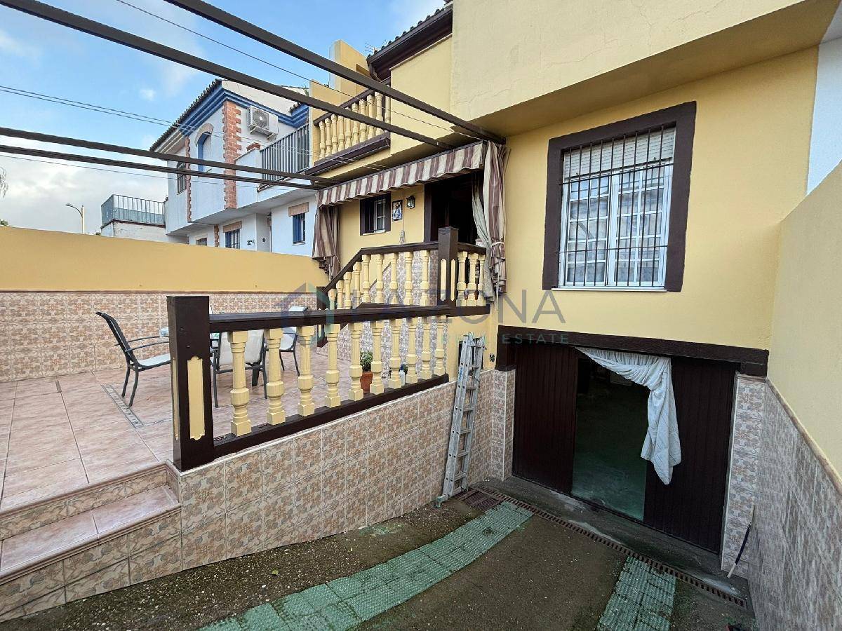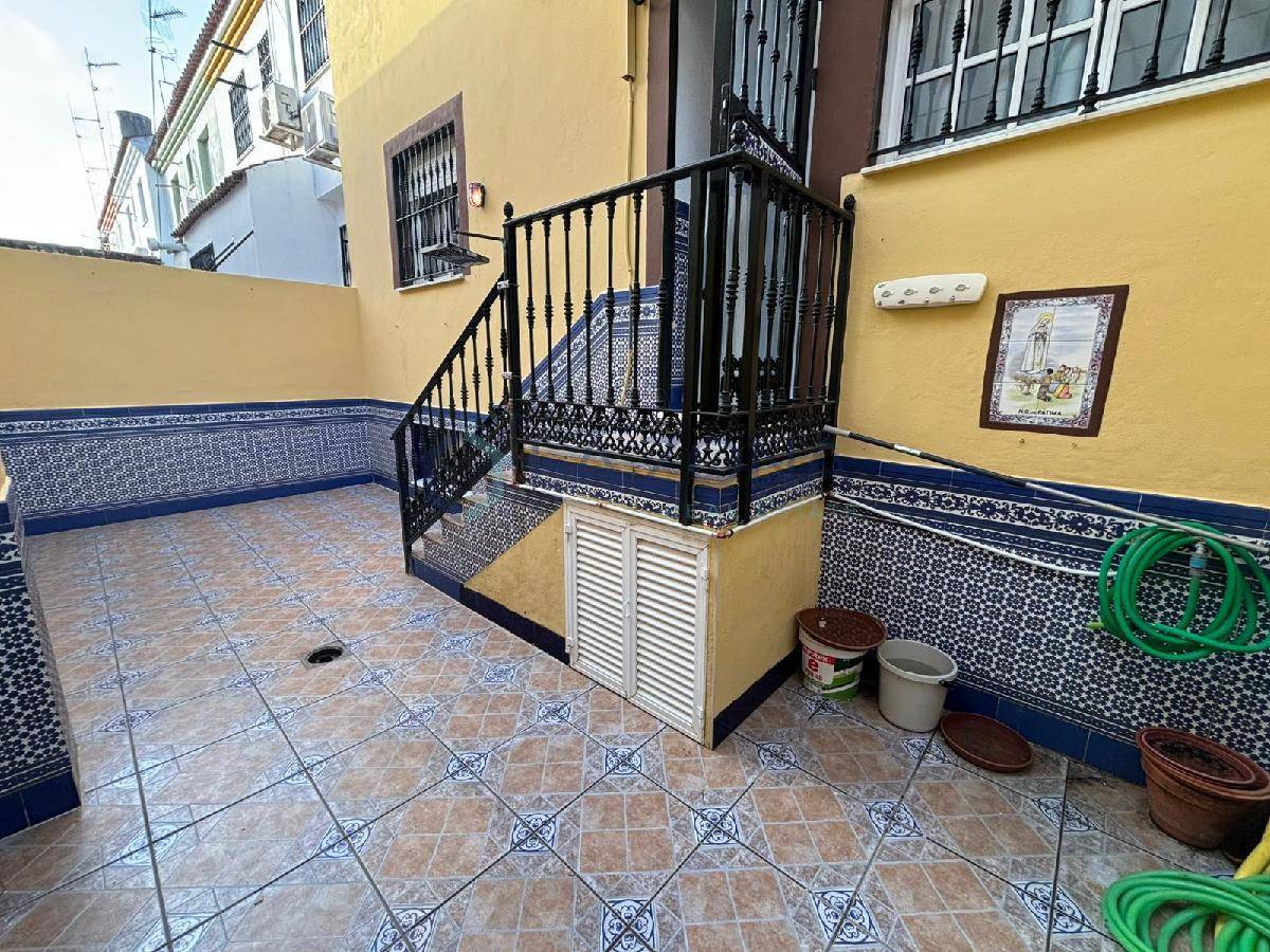 Ref: 0109. Vivienda en muy buen estado de 108 m2 con dos plantas y dos patios, patio delantero y patio trasero, se compone de salón comedor, cocina con lavadero desde donde se sale al patio trasero, tres dormitorios en la planta superior y tres baños, uno en cada planta. En el salón se podría obrar una habitación ya que tiene doble puerta de entrada y es bastante amplio.